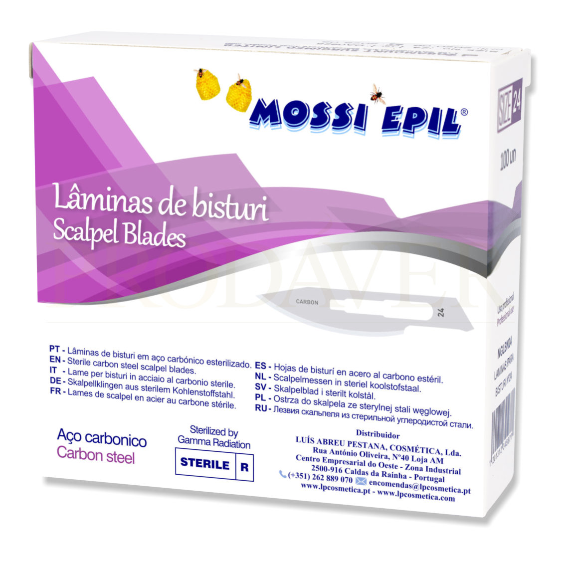 Lâmina de bisturi nº24 para cabo nº4. Lâminas descartáveis de uso único. Só para uso profissional com experiência. Prodáver