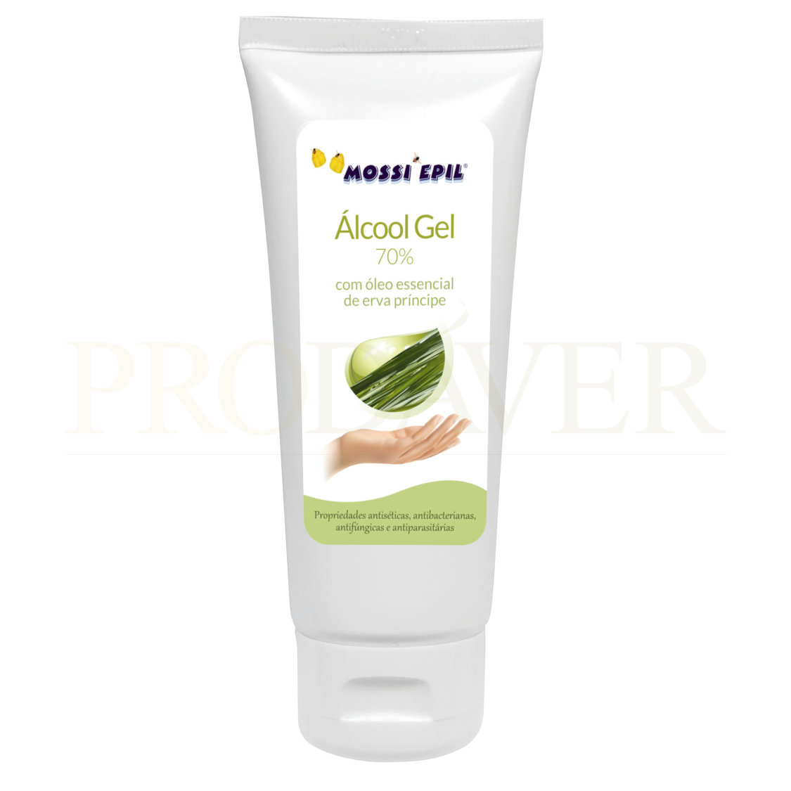 Álcool Gel com 70% de álcool. A desnaturação das proteínas é mais eficiente na presença de água, pois esta facilita a entrada do álcool para dentro da bactéria e retarda também a volatilização do álcool, permitindo maior tempo de contacto. Contém Trietanolamina conhecida como TEA, uma substância fortemente alcalina usada como surfactante. O seu papel principal é ajustar os níveis do pH, aumentando-o caso a sua formulação esteja baixa. O óleo essencial no álcool gel previne que o álcool seque a pele, deixando a pele macia. Prodáver