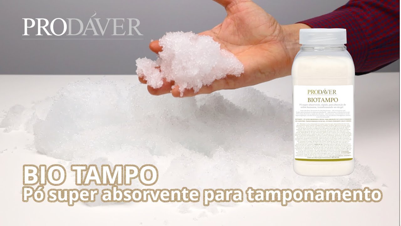 Pó super absorvente, rápido, para absorção de fluidos humanos, em cadáveres, transformando-os em gel, evitando derrames e maus cheiros. Biotampo é uma composição formulada à base de super absorventes de risco nulo, quimicamente inerte. Pode ser utilizado em hospitais, morgues, agências funerárias, casas mortuárias, etc. Biotampo tem ação instantânea. Transforma rapidamente em gel qualquer tipo de fluidos humanos, protegendo os utilizadores dos perigos das bactérias. Não é inflamável. Dado tratar se de um super absorvente, quimicamente inerte, torna-se bastante rentável porque pode absorver uma quantidade de fluidos entre 200 a 300 vezes o seu volume, dependendo do seu tipo. Biotampo, gelifica-se em contacto com os fluidos evitando que sejam expelidos pelos cadáveres, pelo nariz ou pela boca, formando um tampão, evitando assim, os derrames desagradáveis, durante os velórios. Biotampo, apresenta-se em granulado, sem libertar pó na sua manipulação, evitando que este se deposite nos fatos escuros dos profissionais, causando-lhe incómodo. Dado que possui um pH neutro, ajuda a neutralizar os lixiviados e os fluidos, normalmente ácidos, que originam perfurações no zinco das urnas que são colocadas em jazigos. Biotampo não é tóxico, podendo ser usado sem risco para os profissionais que o utilizam. Não contamina os solos. Não dificulta, nem prejudica a decomposição dos cadáveres. Modo de uso : Biotampo deve ser aplicado diretamente na boca e no nariz do cadáver, para gelificar, evitando os derrames e atenuando os maus cheiros. Pode ainda ser aplicado em derrames de todo o tipo de fluidos humanos, deixando gelificar, recolhendo-os, seguidamente. Biotampo pode ser utilizado em hospitais, morgues, agências funerárias, casas mortuárias, etc., para aplicação diretamente nos cadáveres e ainda nas urnas de zinco para fazer a absorção dos fluídos e evitar perfurações. Precauções: Recomenda-se o fecho hermético das embalagens após cada utilização.