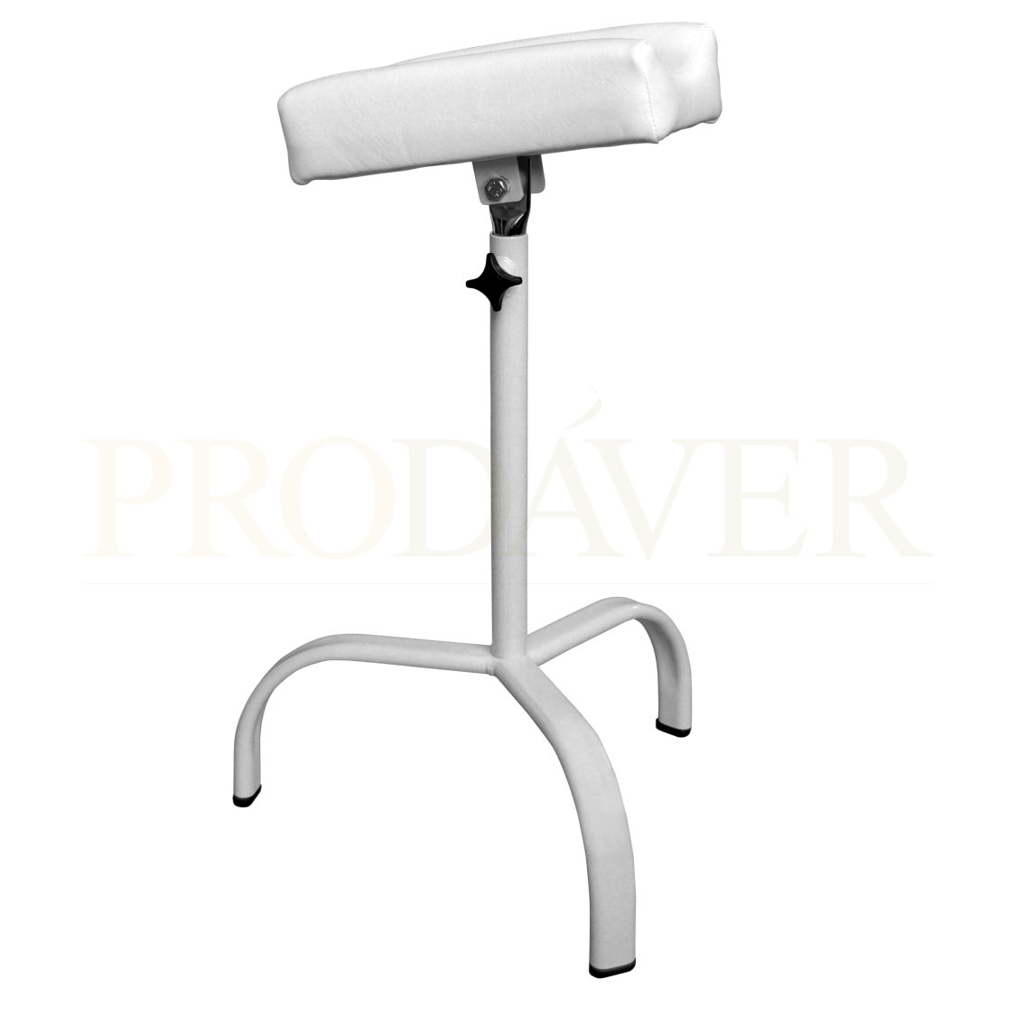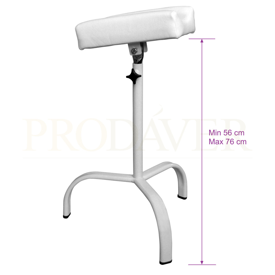 Apoio para pés que oscila na altura : mínima: 56cm, máxima: 76cm. O tripé tem um apoio para o pé que inclina e declina. Estrutura na cor branca a condizer com napa branca de PVC. Prodáver