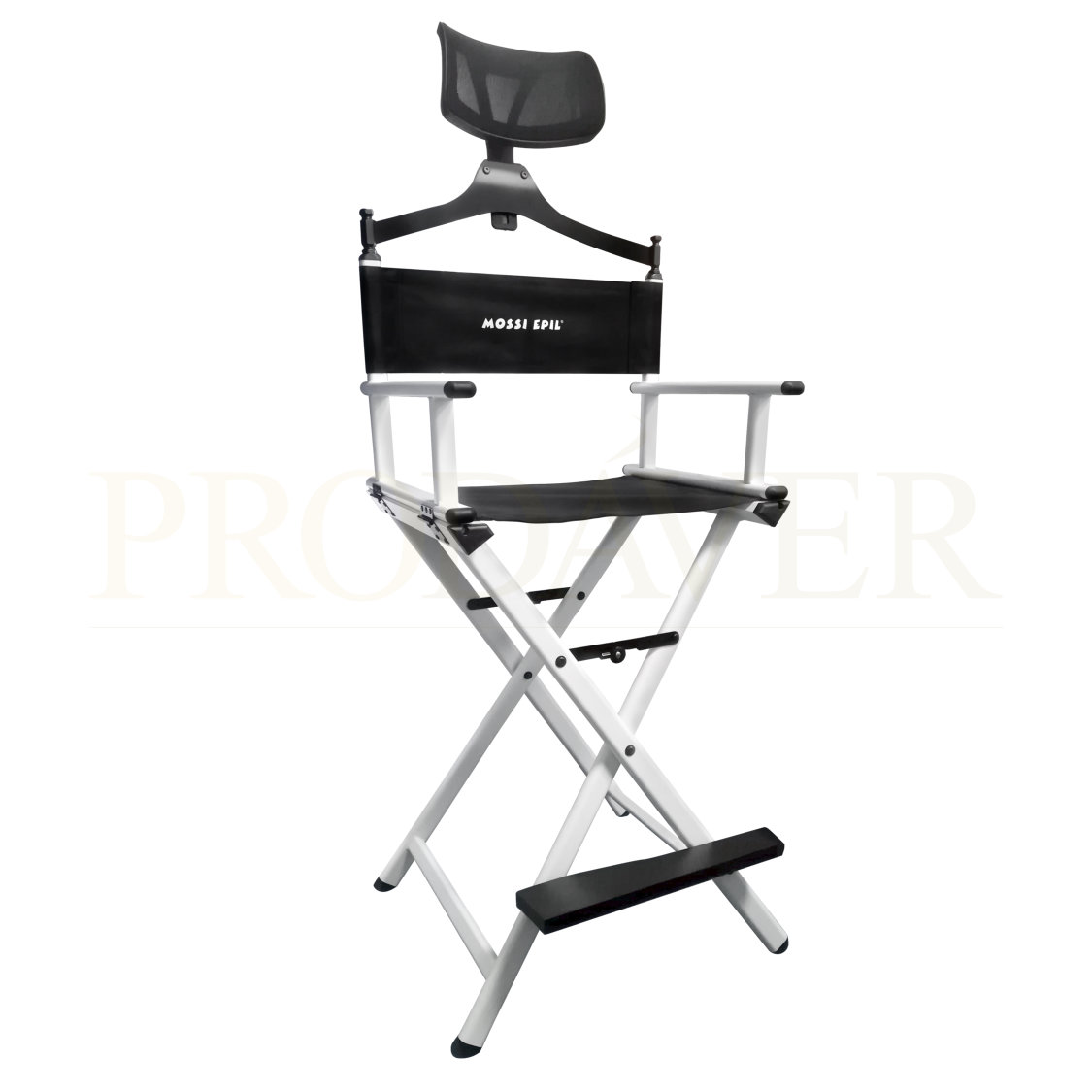 Fauteuil de maquillage professionnel avec une structure en aluminium blanc. Le dossier et l'assise sont en nylon noir. Il dispose d'un appui-tête réglable en hauteur et d'un repose-pieds, que vous pouvez faire basculer sur le côté lorsque vous montez sur la chaise, mais vous ne devez pas l'utiliser comme support pour monter sur la chaise, car le repose-pieds n'est là que pour soutenir vos pieds une fois que vous vous êtes assis. La chaise est pliable pour se refermer afin de faciliter son transport, mais vous devrez d'abord retirer la tête de lit et ses accoudoirs. Dimensions de la chaise de maquillage : hauteur : 1420 mm x longueur : 550 mm x largeur : 420 mm. Prodáver.